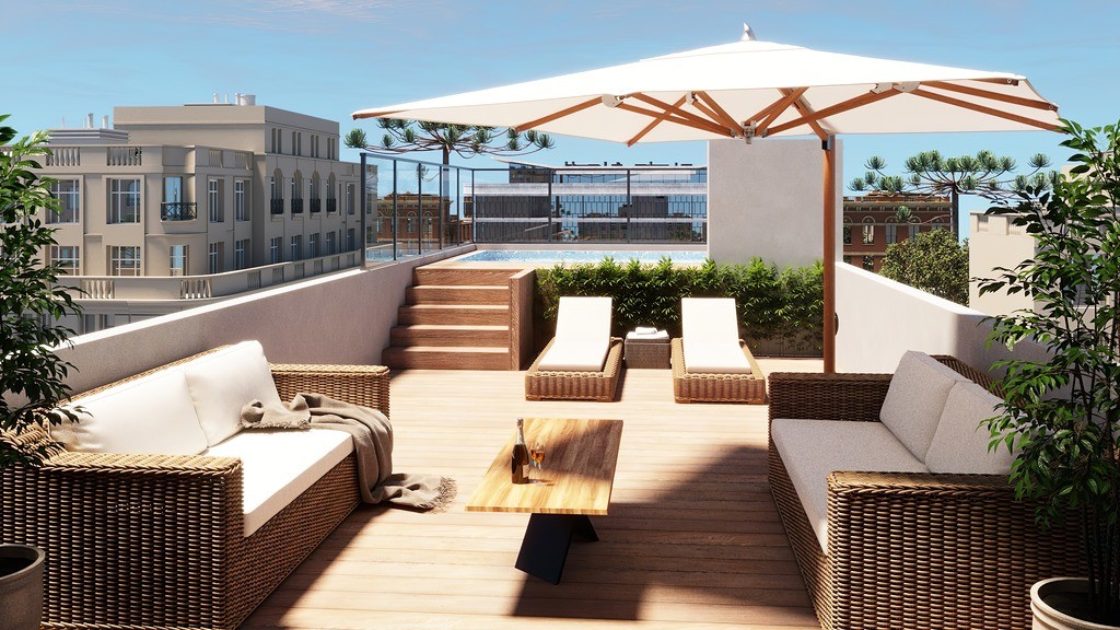 O Belgrano One conta com salão de festas, espaço kids, hall de entrada, coworking, lavanderia, rooftop com academia, deck, piscina e espaço gourmet.