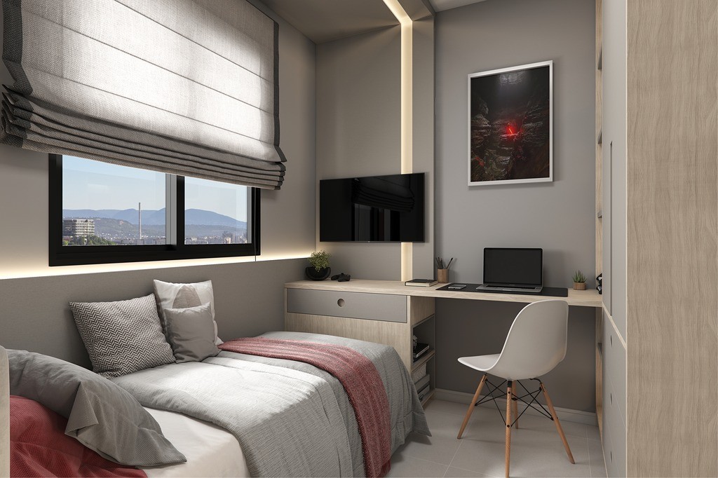 Piso porcelanato em todos os ambientes, garantindo elegância e facilidade de manutenção;