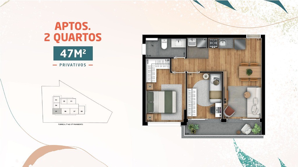 Com uma área privativa de 47,46 m², esse empreendimento oferece: