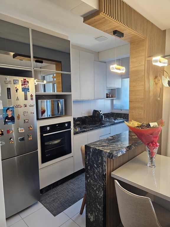 Cozinha Planejada com móveis sob medida e batedores com amortecedores.