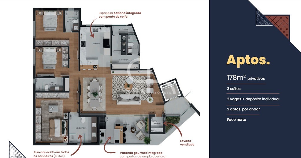 Com uma área privativa de 177,52 m² e área total de 269,49 m², este empreendimento oferece: