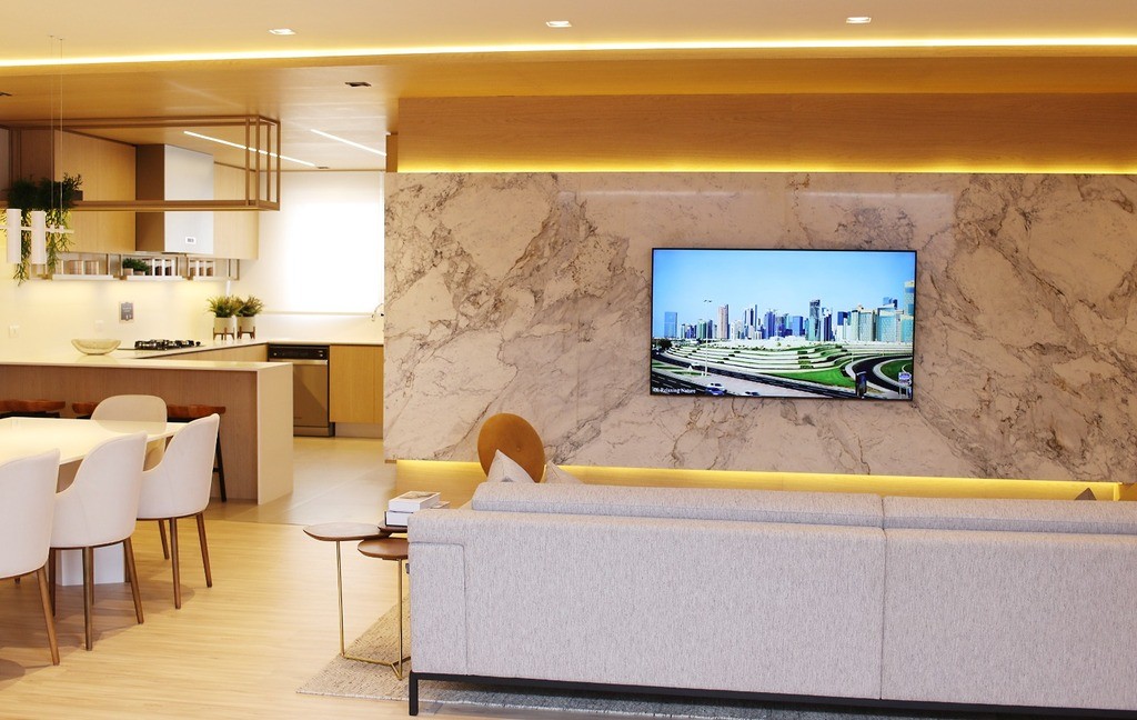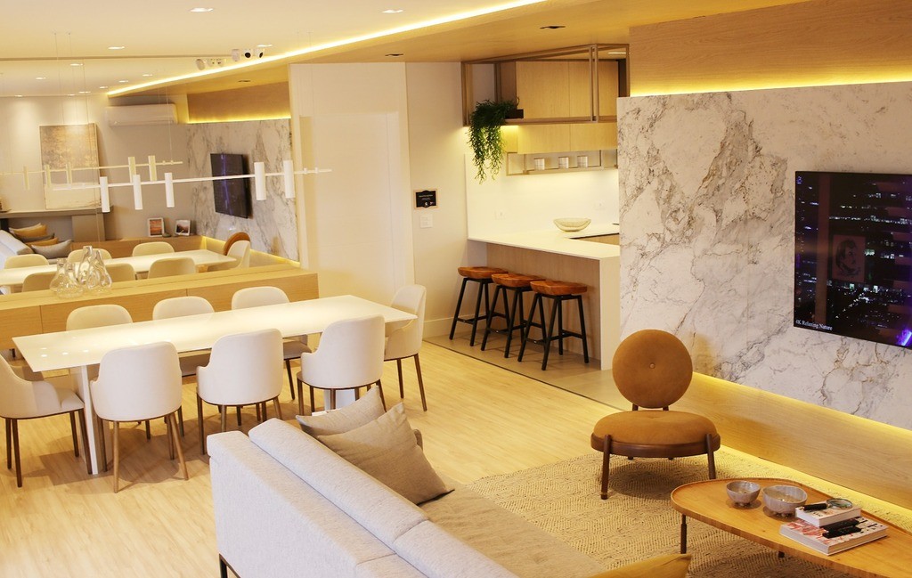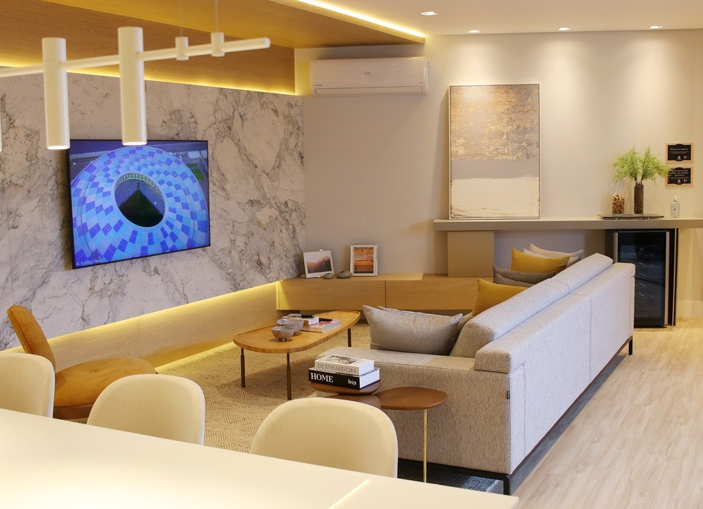 Sala de estar ampla e integrada, proporcionando um ambiente acolhedor