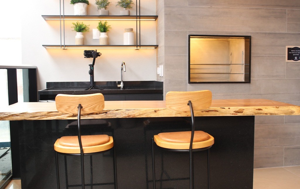 Varanda gourmet integrada, com tampo já instalado