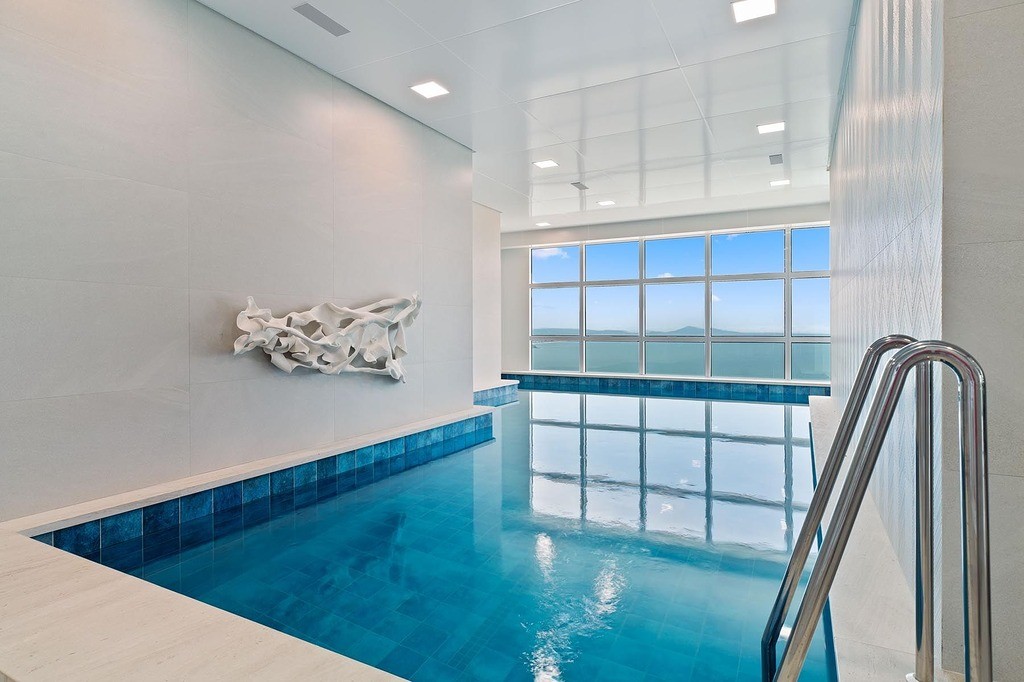 Sauna seca e úmida, cinema e espaço fitness.