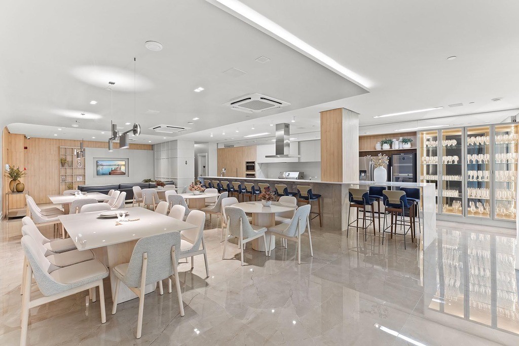 Wine bar, espaço estar, área de descanso e espaço pilates.