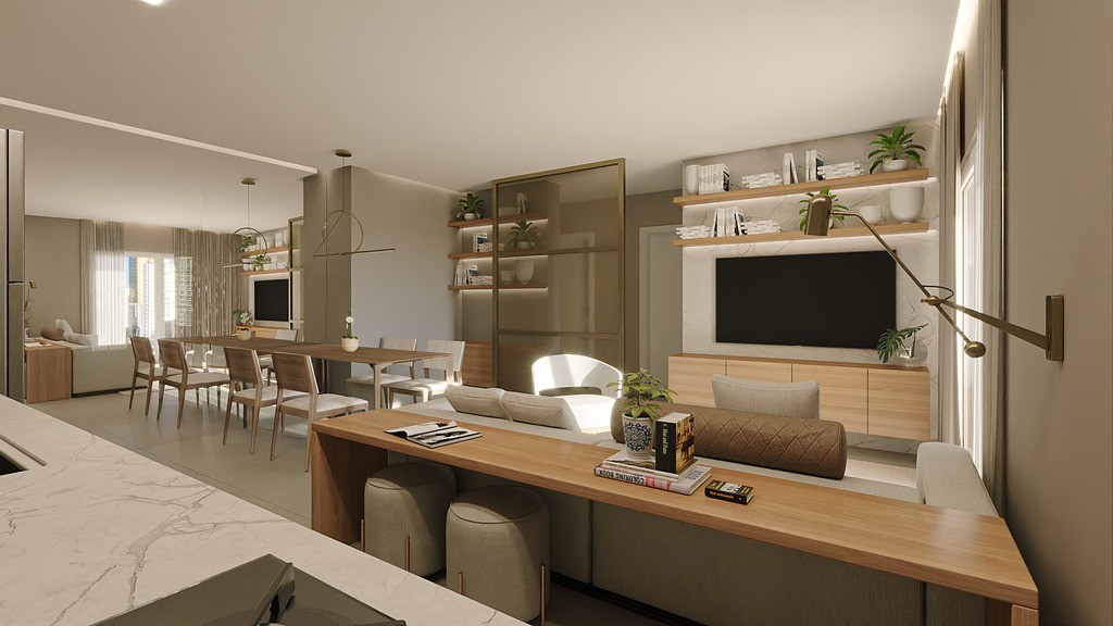 Living integrado para estar e jantar