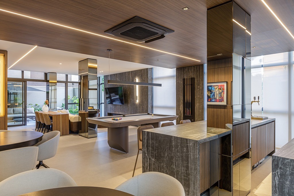 O Palazzo Saldanha entrega uma experiência de exclusividade em cada detalhe: hall de entrada imponente, espaços gourmet e festas internos e externos, piscina coberta com solarium, projeto de interiores sofisticado, acesso por biometria, espaço delivery, monitoramento 24h e garagem com pintura epóxi. Um conjunto de amenidades que eleva o conforto e a segurança a outro nível.