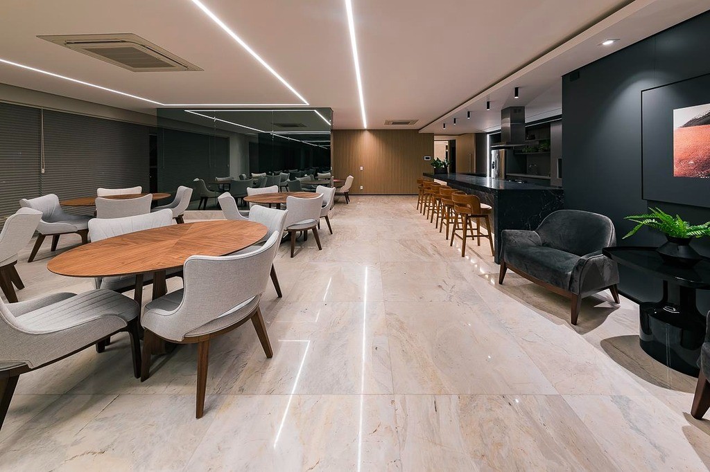 Salão de festas com lareira