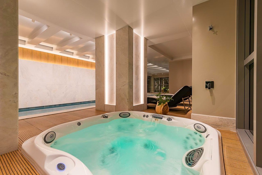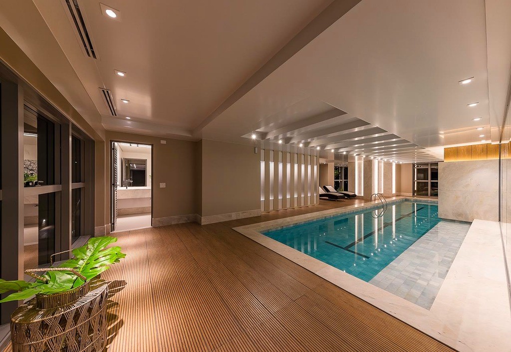 Piscinas coberta e descoberta aquecidas com spa
