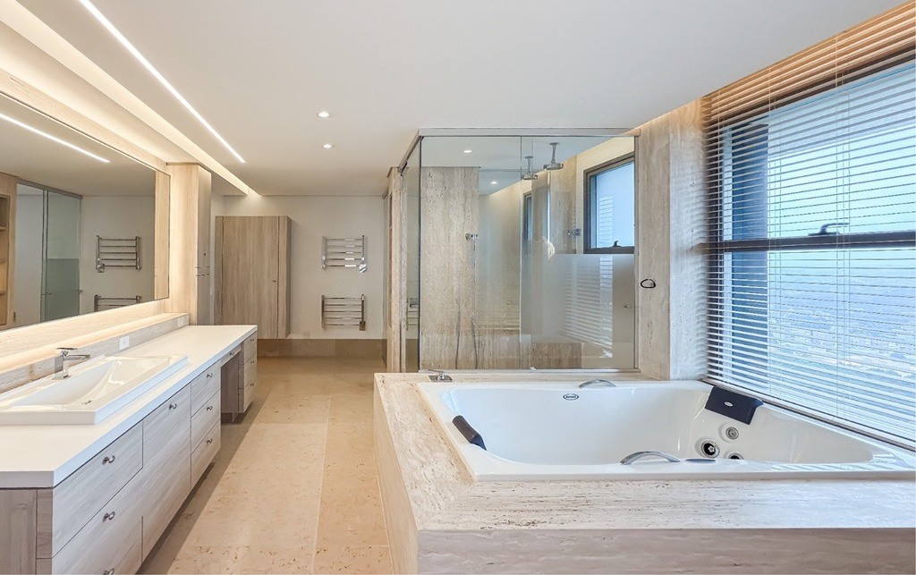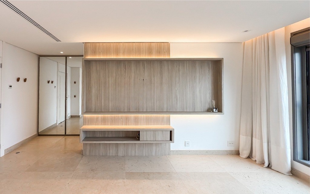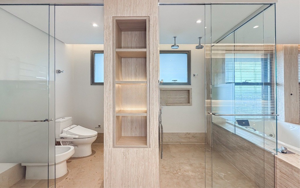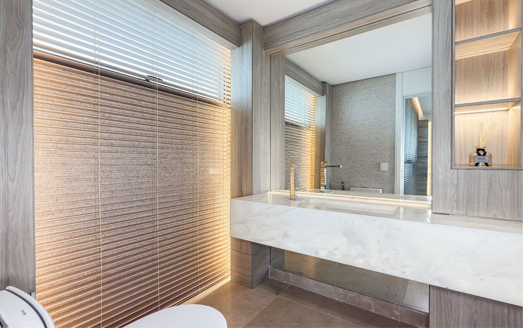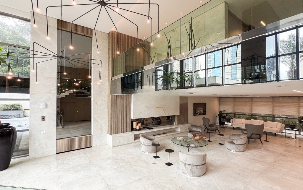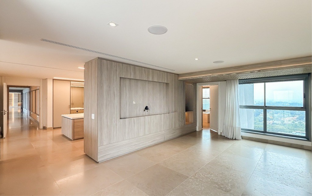 2 Suítes, sendo uma suíte master ampla com home office, sacada, dois closets e um banheiro luxuoso com banheira de hidromassagem Jacuzzi, chuveiros cascata de teto, toalheiros aquecidos e assento eletrônico washlet Toto (possibilidade de reversão para três ou quatro suítes)