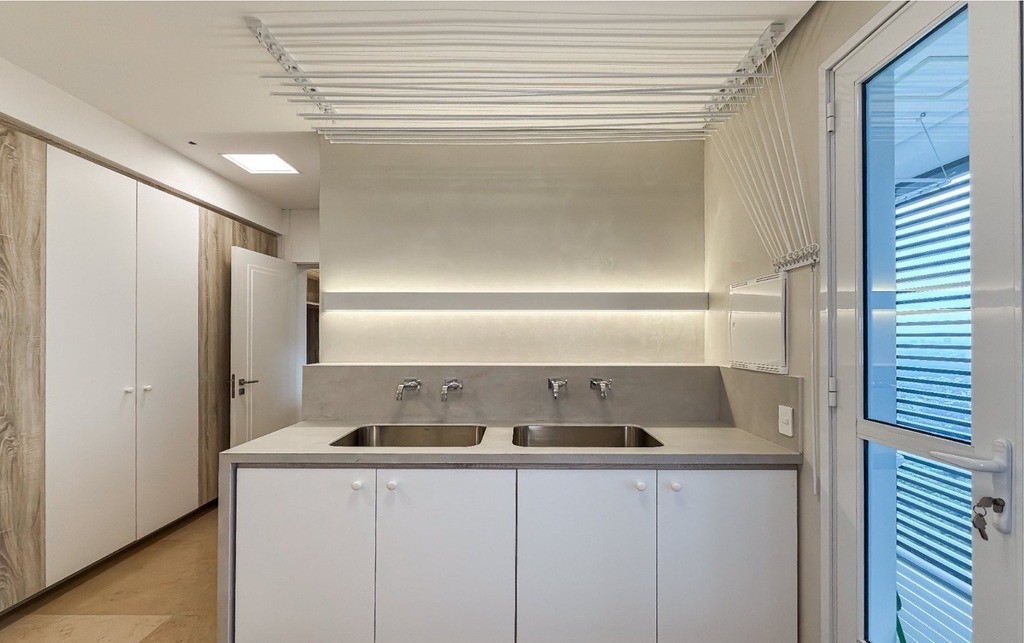Lavanderia equipada, rouparia e dependência de serviço