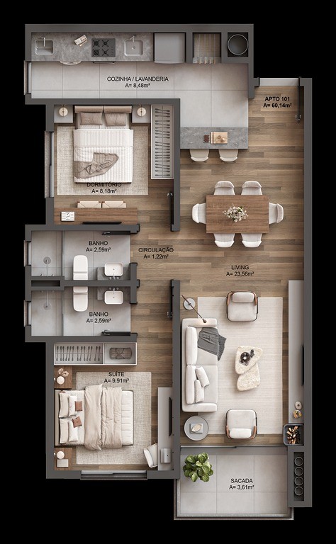 - Área Privativa de 72,93m²