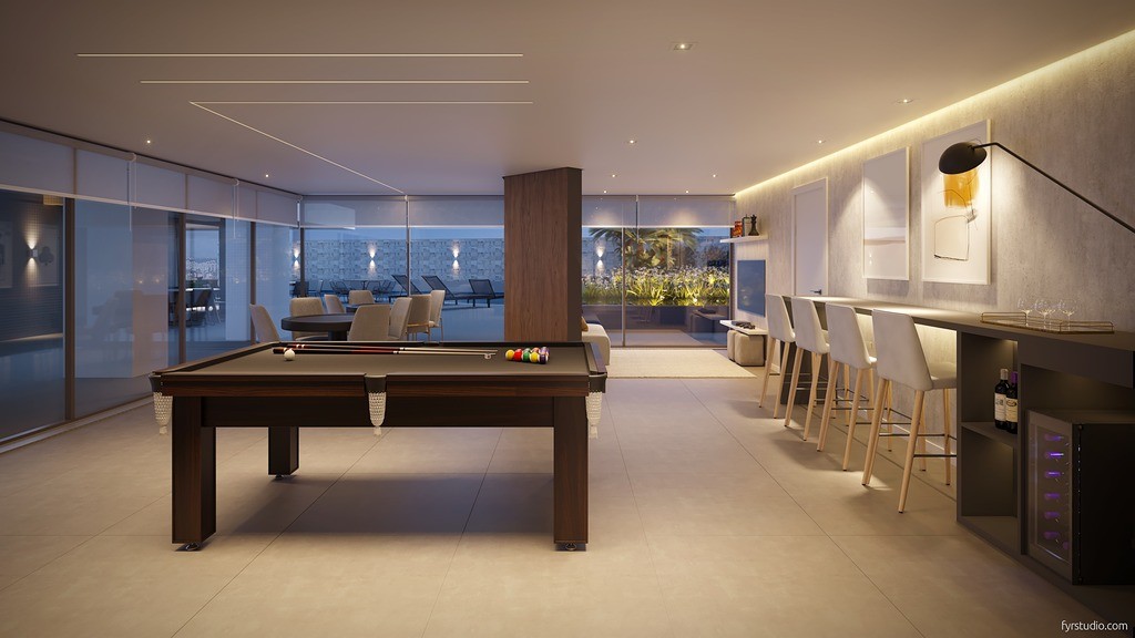 Salão de jogos de tabuleiro, sinuca e espaço para home theater/gamers;