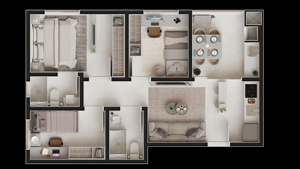 3 Quartos, sendo uma Suíte