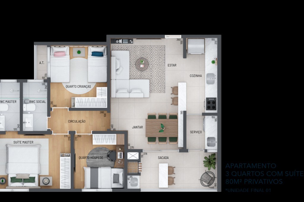 - Área Privativa de 80m²