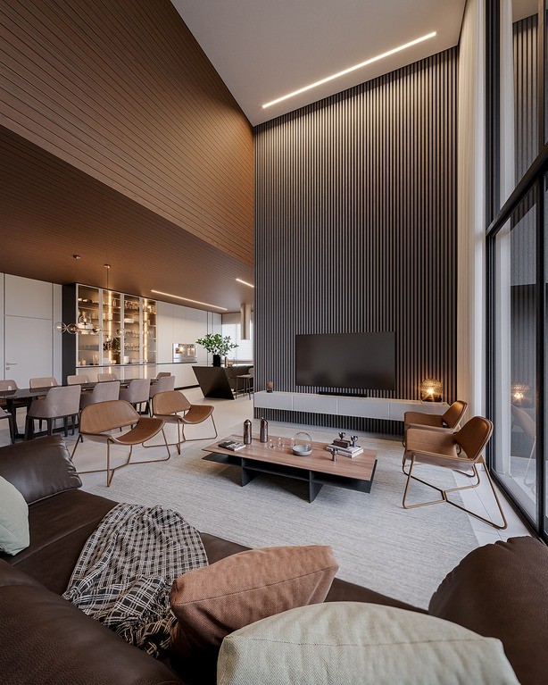 Sala de estar e jantar integradas, proporcionando um ambiente acolhedor