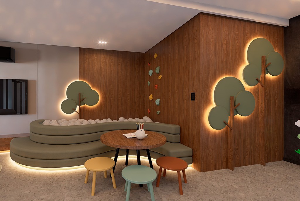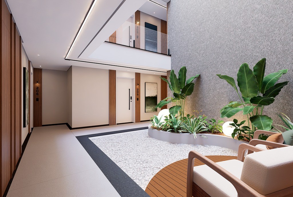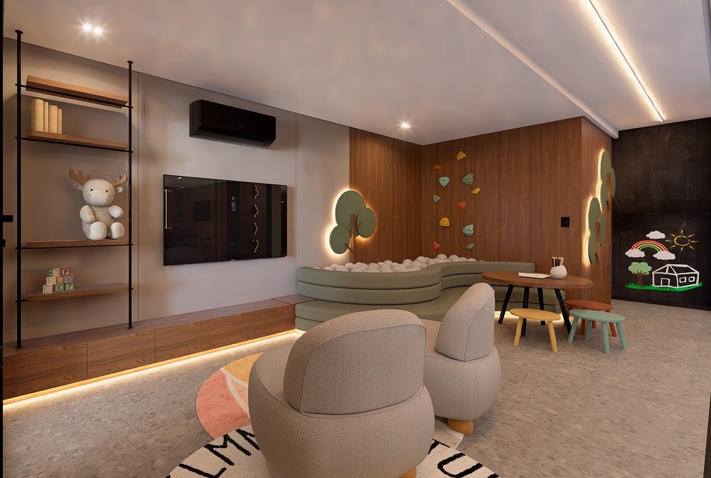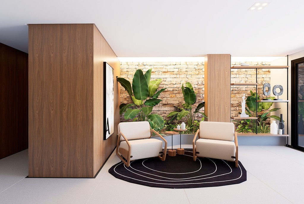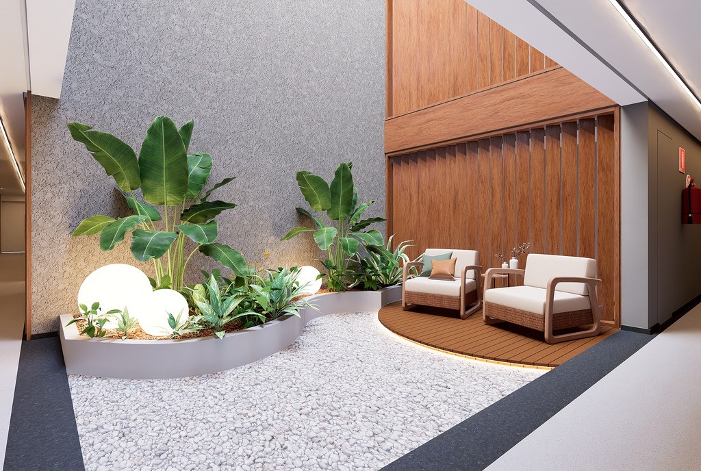 O Condomínio Araucá conta com Academia, Salão de festas, área kids, lavanderia, jardim interno e hall de entrada.