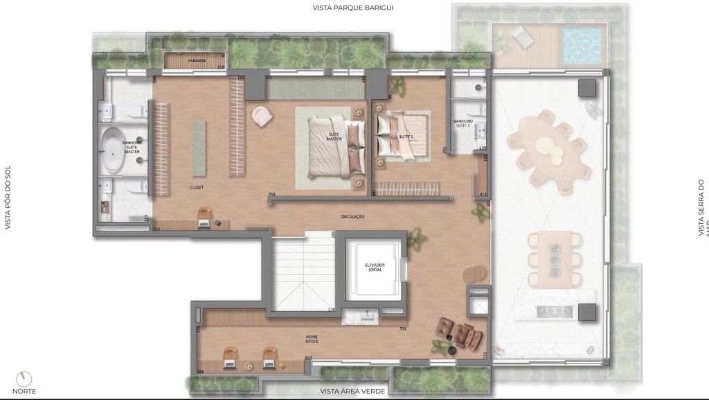 - Áreas íntima e social voltadas para o Norte e para o Parque Barigui