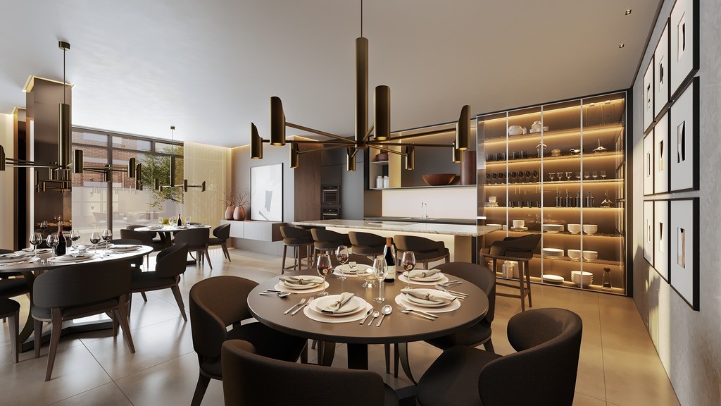 Sala de estar e jantar integradas, proporcionando um ambiente acolhedor