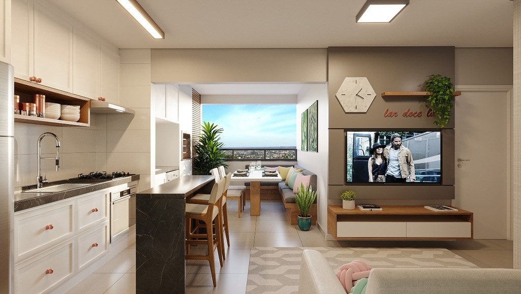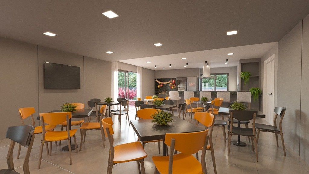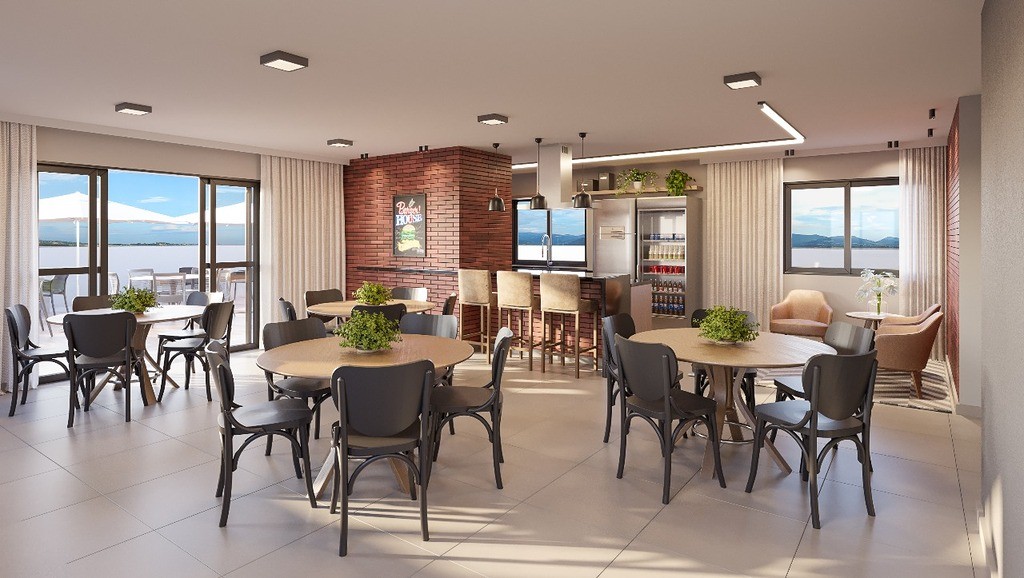 Com 48,00m² de área total, contendo 2 quartos, banheiro social, cozinha, lavanderia e sacada com churrasqueira a carvão.