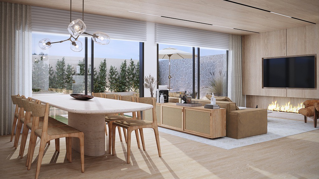 Sala de estar e jantar integradas, proporcionando um ambiente acolhedor
