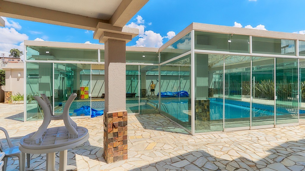 Condomínio com segurança 24h e lazer completo: piscina coberta, quadras, salão de festas gourmet, academia, playground, coworking e muito mais.