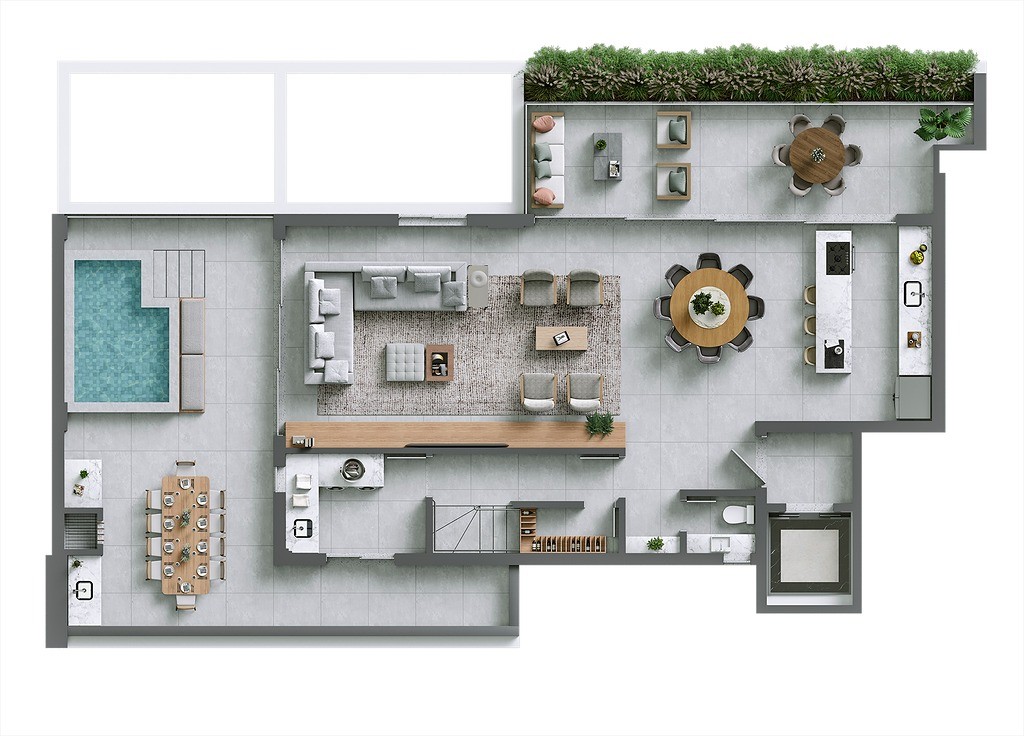 - Terraço gourmet com churrasqueira a carvão