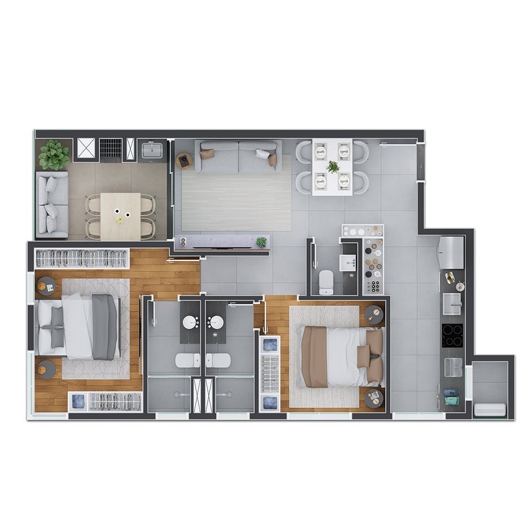 - Piso em porcelanato nos banheiros