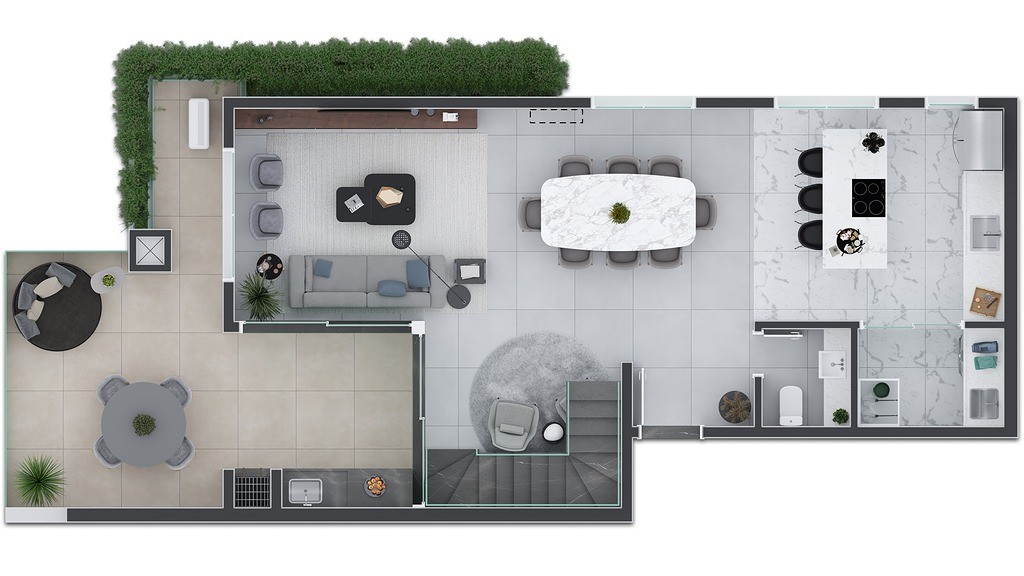 - Sala de estar e jantar integradas