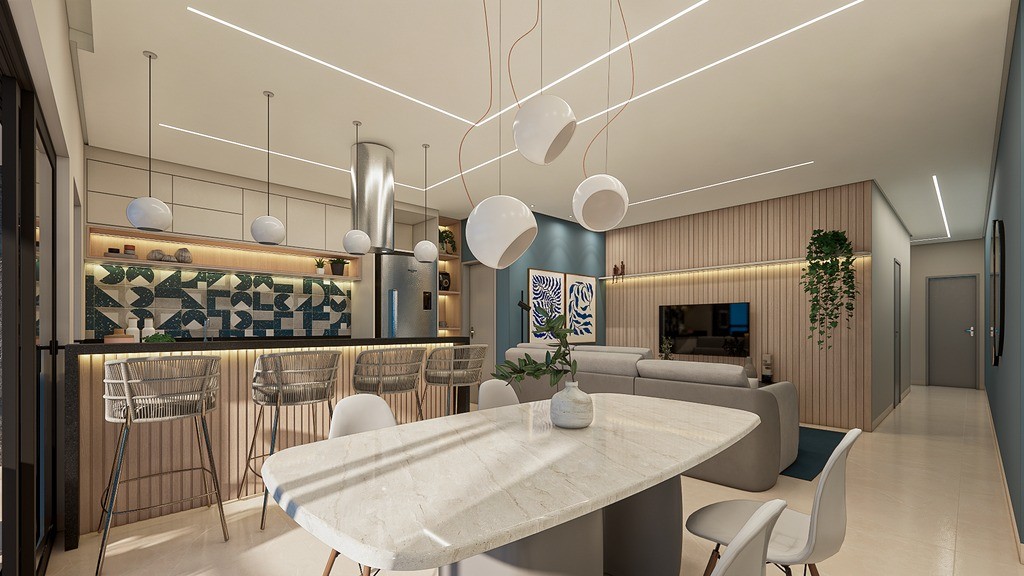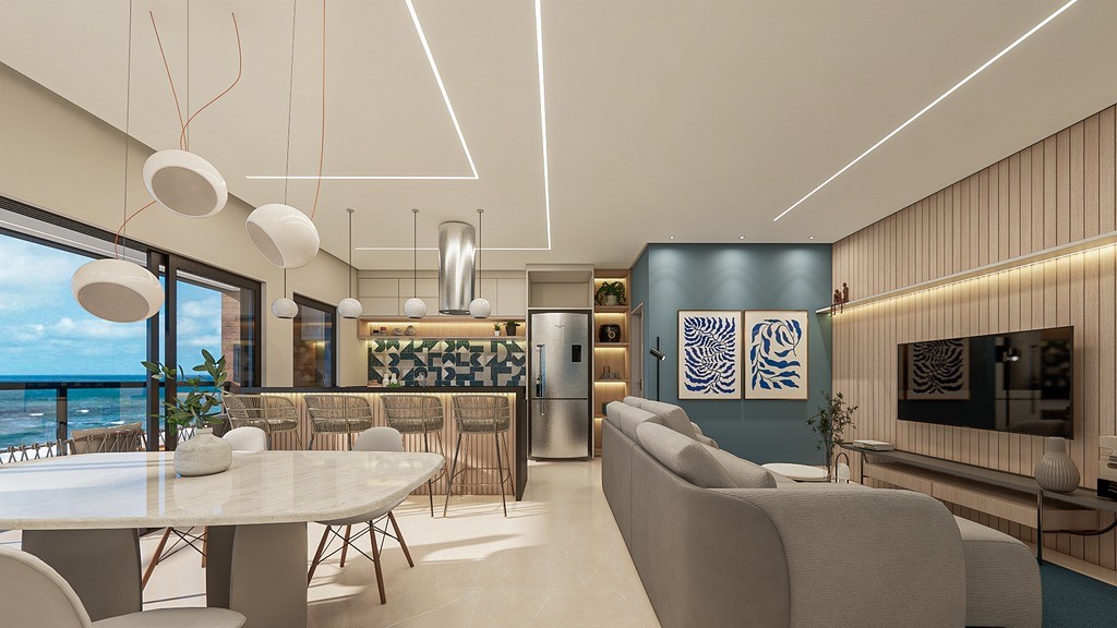 Amplo living integrado, proporcionando um espaço amplo e acolhedor