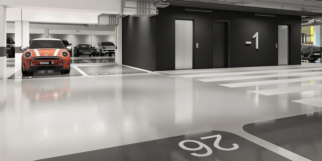 Piso com pintura epóxi na garagem do subsolo