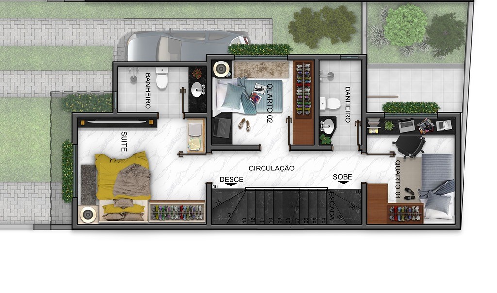 - 3 quartos, sendo 1 suíte