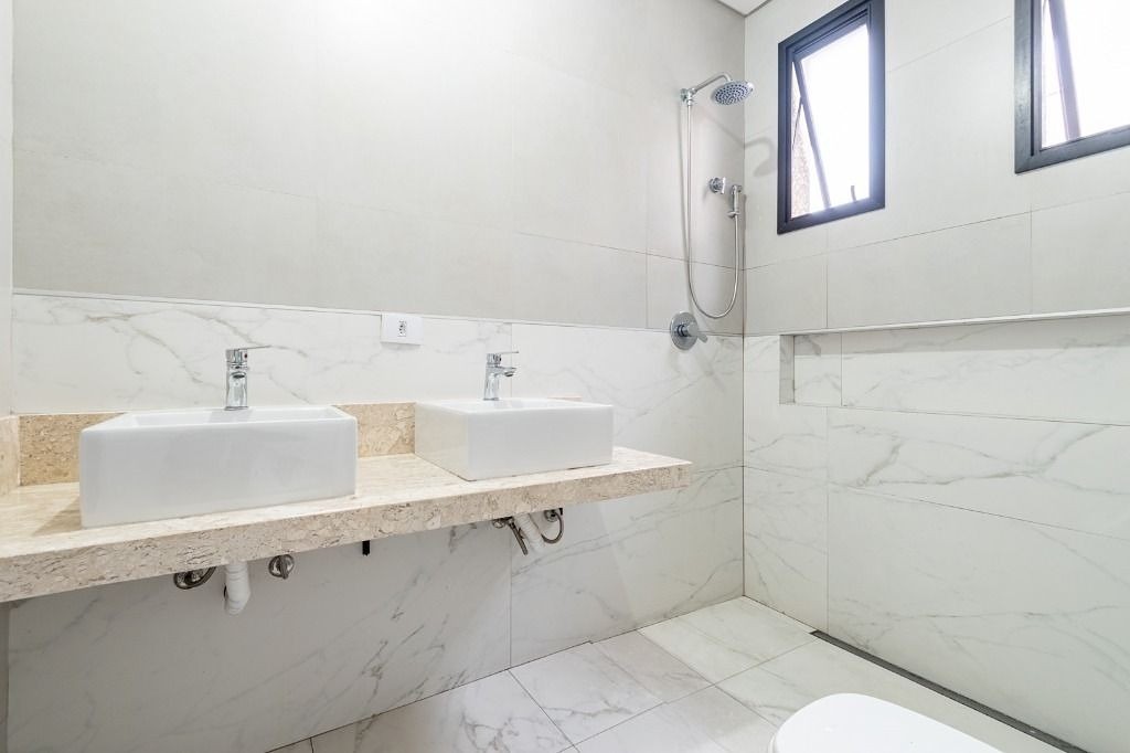 3 suítes, sendo uma suíte master com closet espaçoso, iluminação embutida e banheiro com duas cubas e nicho