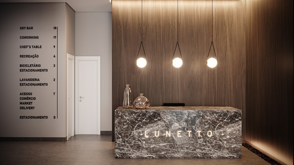 O Lunetto conta com Academia, Pet care, Coworking, Central delivery, Marketplace, Lavanderia, Sala de reunião, Sport bar, Chefs table, Sky bar, Sauna, Piscina coberta e Bicicletário