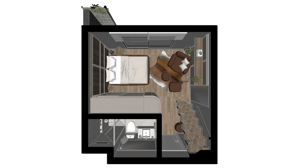 Área privativa de 13,48 m² e área total de 18,80 m²